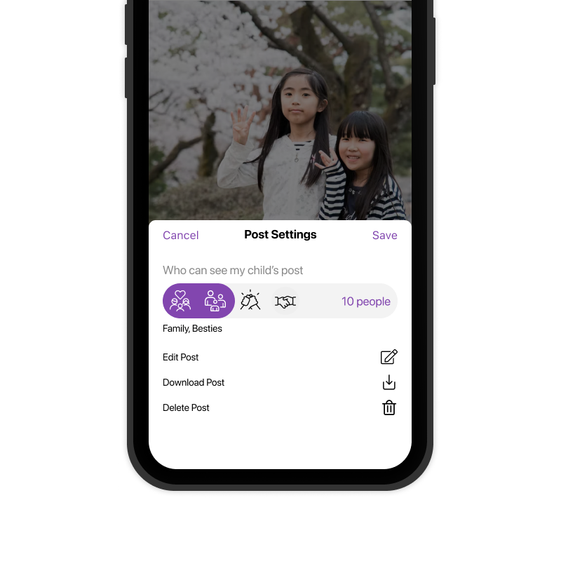 Admin has the rights to modify Child’s post if you think they are not appropriate. Admin can change the classification from Friend to Besties or Family.