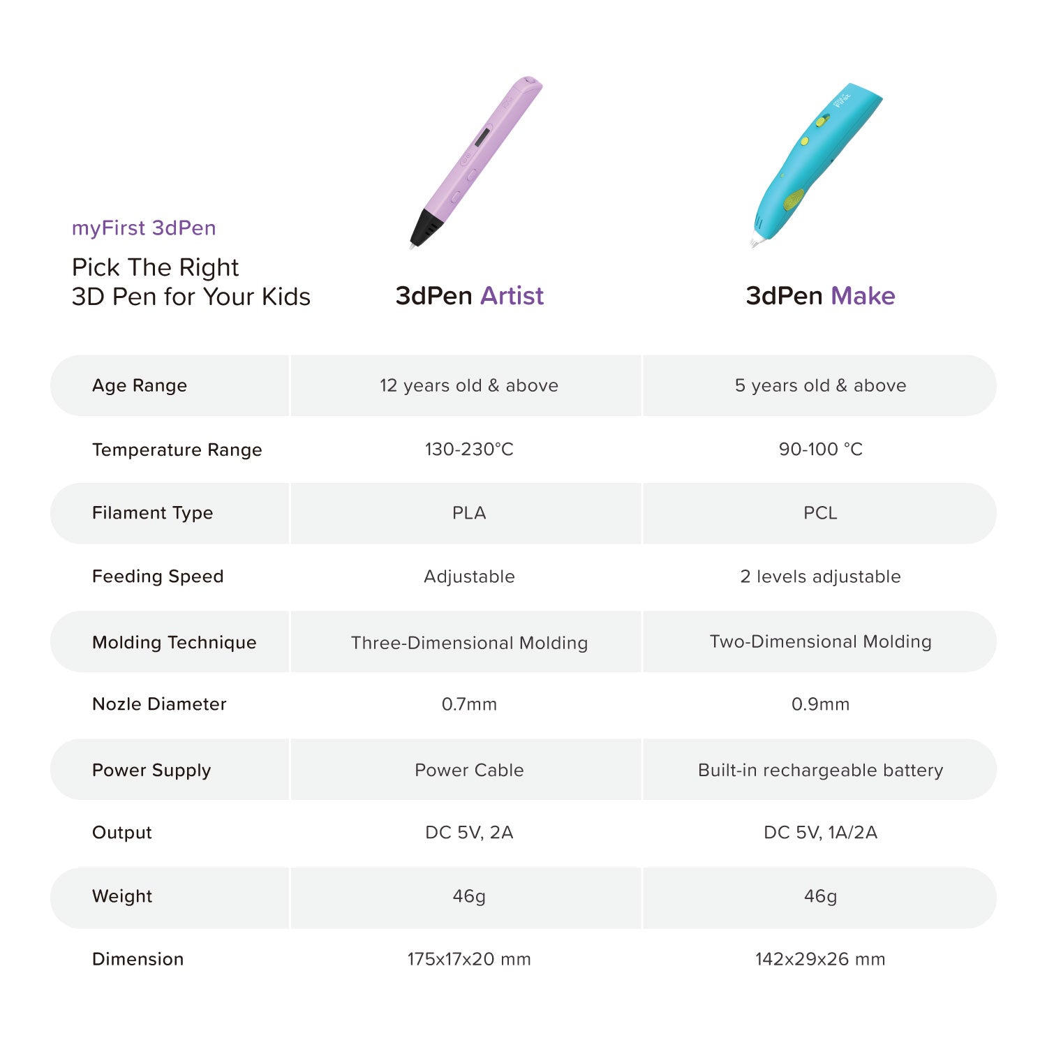 Age Recommendation: For safety reasons, the myFirst 3dPen Artist is recommended for users 12 years and older.