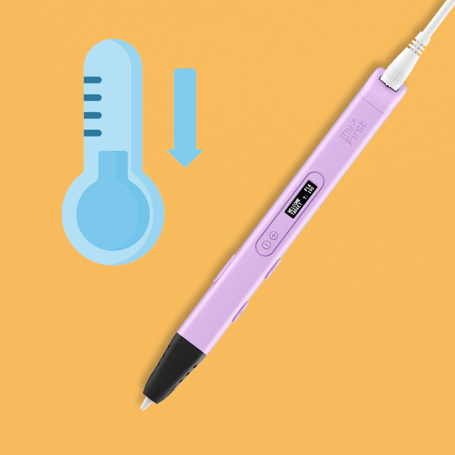 When not in use, the myFirst 3dPen Artist shifts to Idle Mode, lowering its temperature to a safer 130°C (266°F), while keeping the pen ready for continued use.