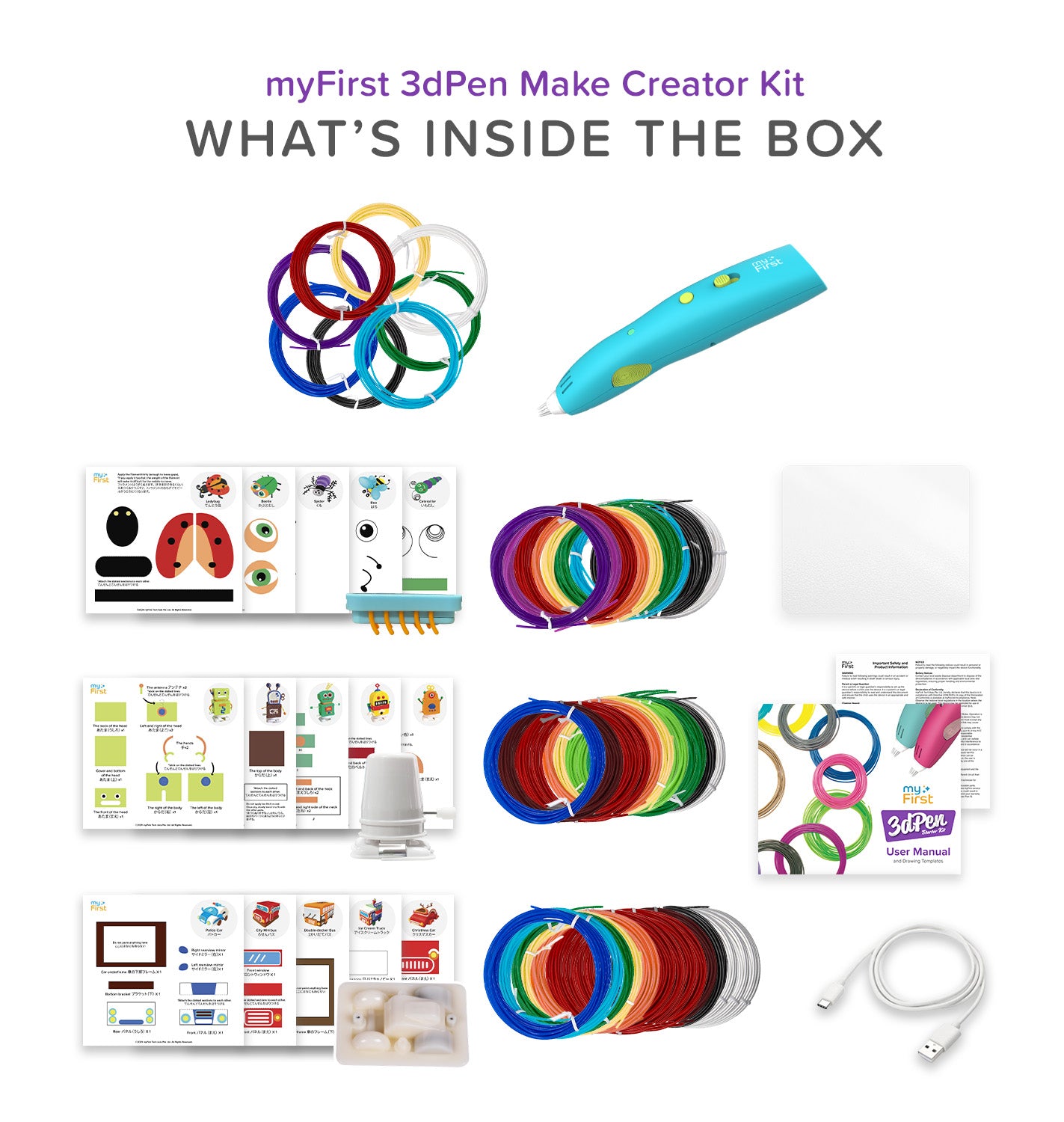 - Complete Kit: Includes 1x 3dPen Make, 51 rolls of PCL filaments (111m / 365ft), 15 drawing templates, and 3 interactive parts to get started.