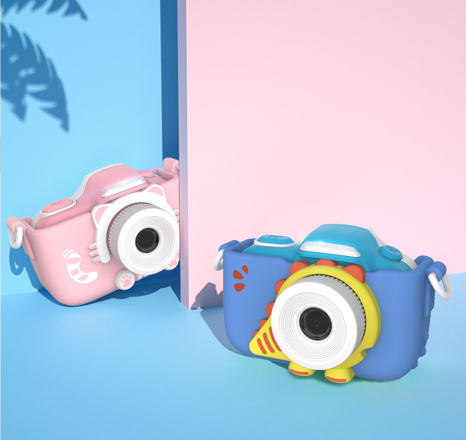 16MP Digital Camera for Kids with Selfie Lens and included Protective Sleeve. Choose from a Chill Giraffe, Cool Dinosaur, or Cute Kitten design for your kid's camera.