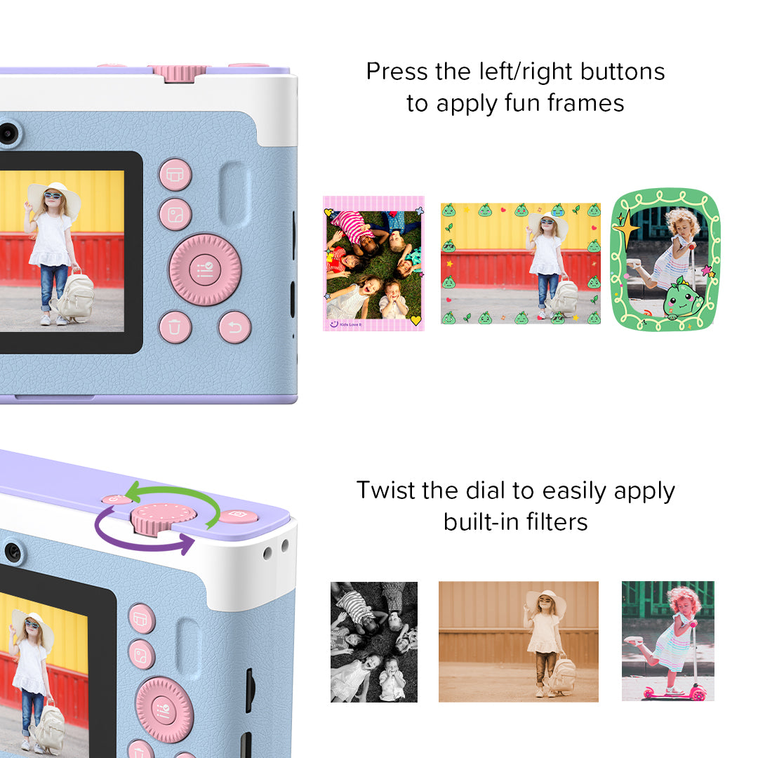 - Spark Endless Creativity: Ignite your child's imagination! With a simple twist, they can explore fun frames, playful filters, and creative stickers, turning every single photo into a unique, one-of-a-kind masterpiece.