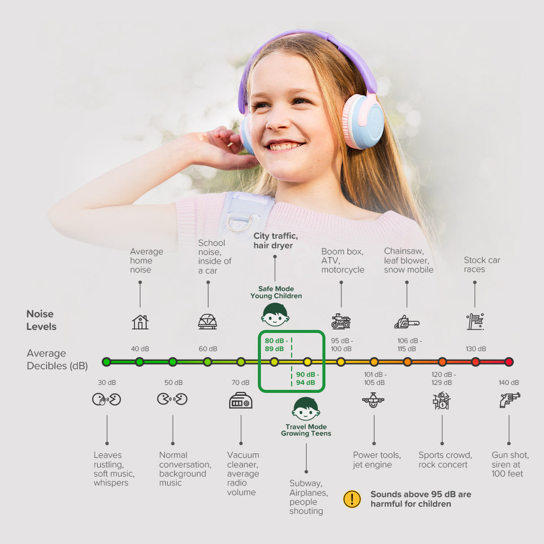 - Safe Mode (85dB): Ideal for everyday listening and protecting young ears.