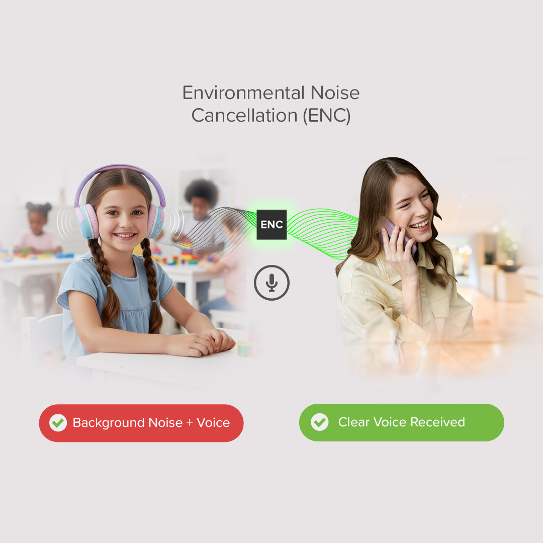Stay connected easily, even in noisy places. Built-in ENC (Environmental Noise Cancellation) technology actively removes distracting background noise so your child can hear and be heard clearly on every call.