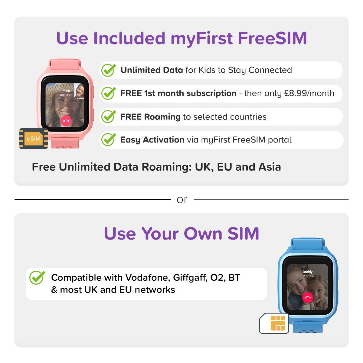 The watch includes a myFirst SIM card plus a free 1-month subscription to get you started