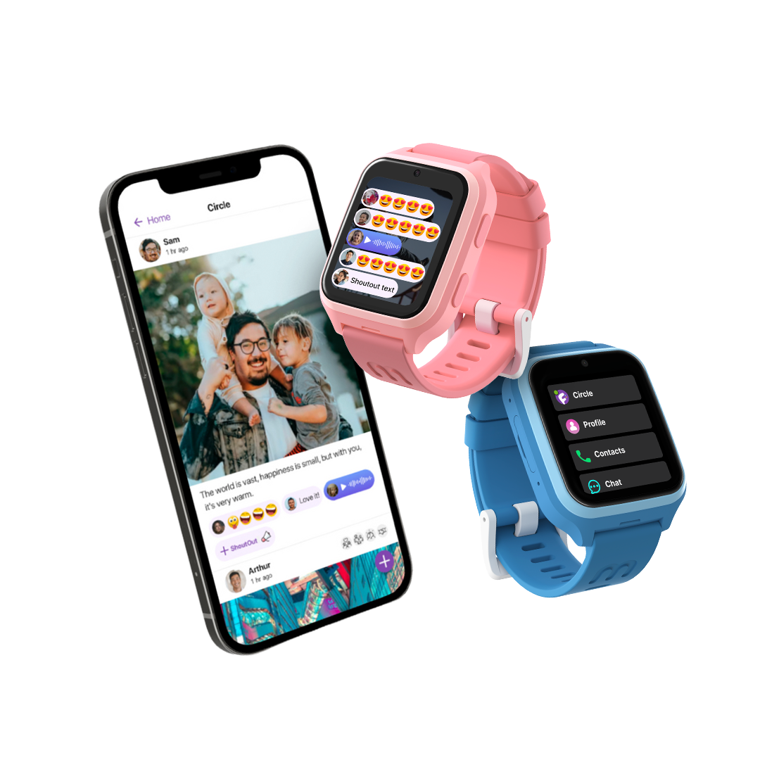 myFirst Fone M1 pairs with the myFirst Circle app, available on both iOS and Android. Parents can monitor, call, message, and manage safety settings directly from their smartphone.