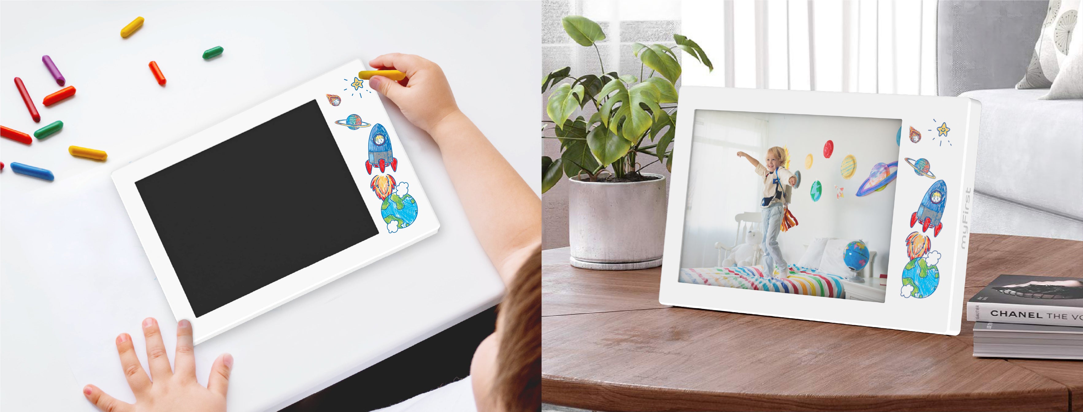 The myFirst Frame Doodle is the perfect digital photo frame for families with young children. It features a durable, child-friendly design. You can doodle and draw on their digital frame to customize the frame with their own creativity.