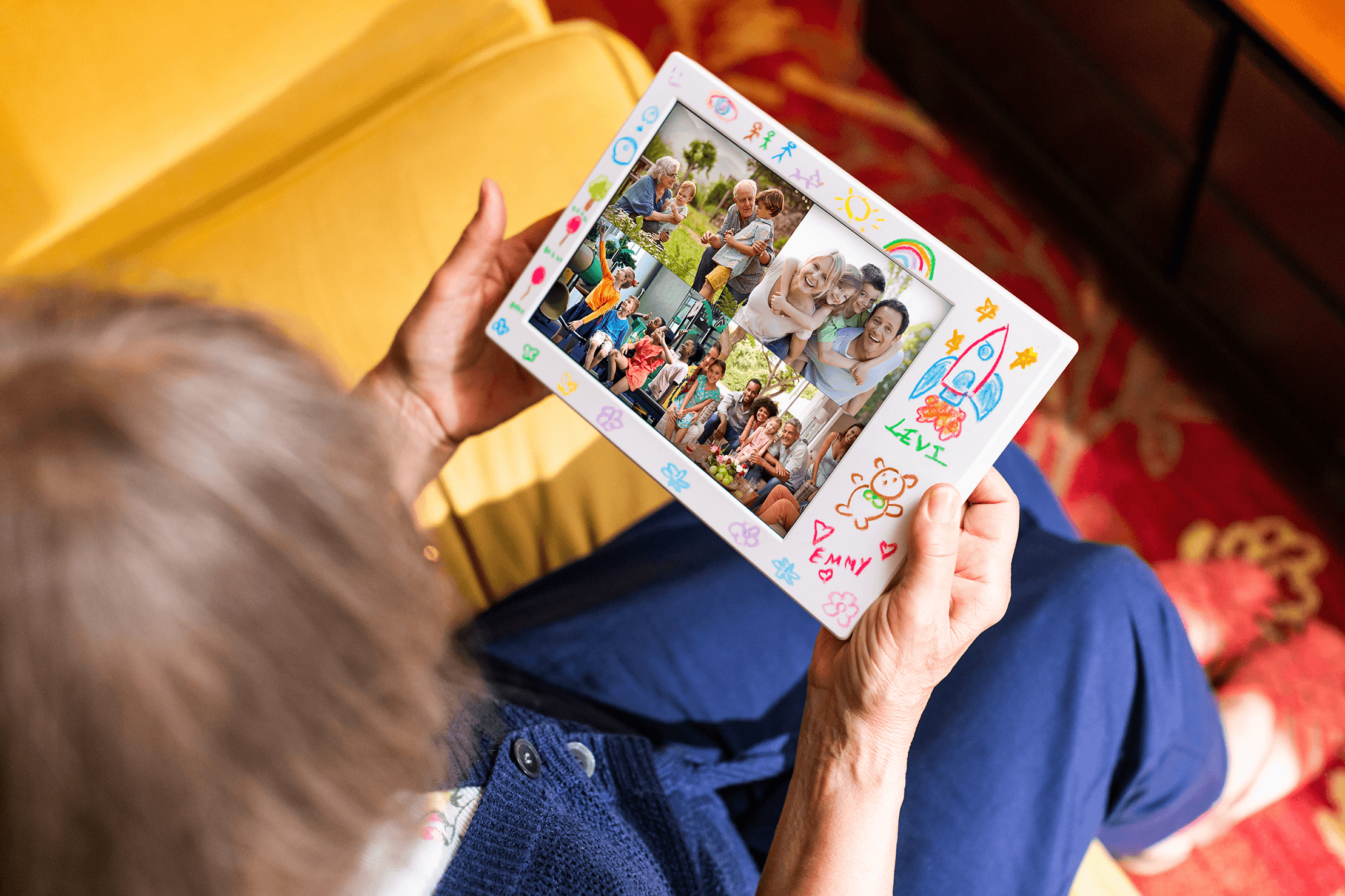 The myFirst Frame Doodle features a special doodling area on the frame’s casing, allowing kids to express their creativity. Children can draw and color directly on the frame’s surface, creating a personalized gift for their grandparents on special occasions.